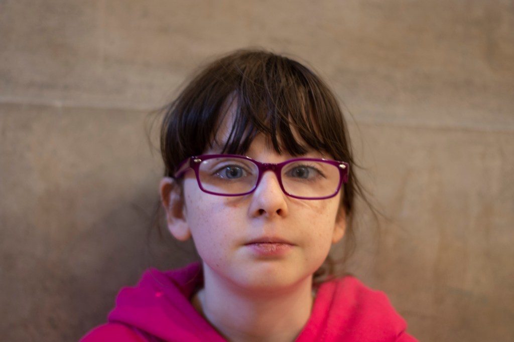 The brief for this exercise was to find a location with a good light for a portrait shot. Place your subject some distance in front of a simple background and select a wide aperture together with a moderately long focal length. Take a viewpoint about one and a half metres from your subject, allowing you to compose a headshot comfortably within the frame. Focus on the eyes and take the shot.