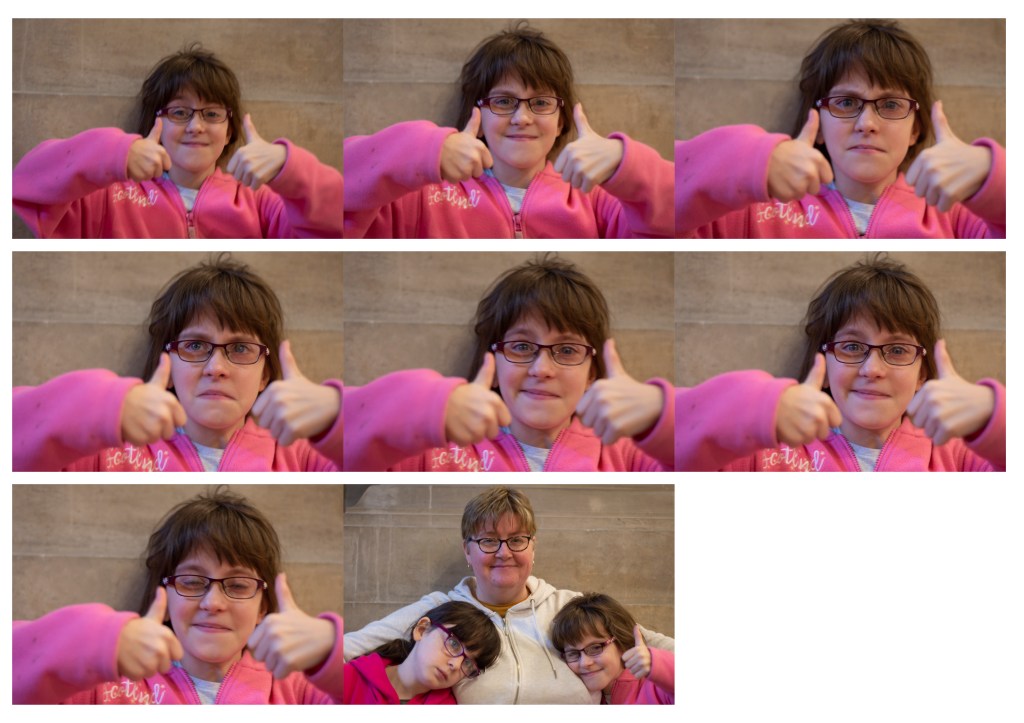 The final image, I chose simply because it has all three of them in it and there is a range of emotions, enjoyment, positivity, thoughtfulness, as well as a hint of tiredness.