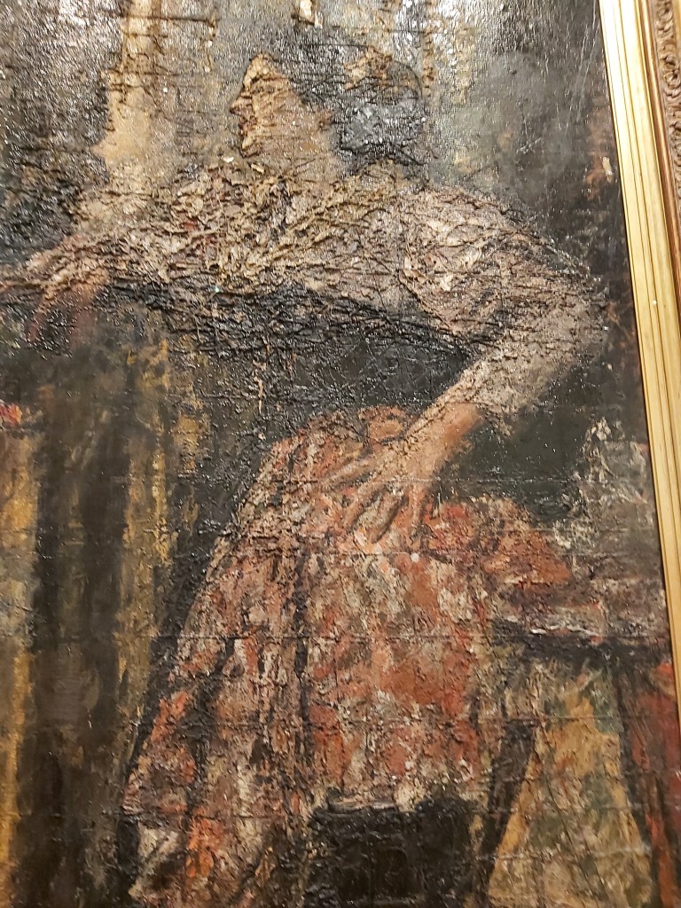 The other interesting feature of this painting that you can see clearly in the image above is the grid lines. Mancini’s technique was to use a grid when painting. This grid matched one that was placed in front of the person that was sitting for the painting. As a result the remains of the grid lines can be seen when you look closely at the painting.