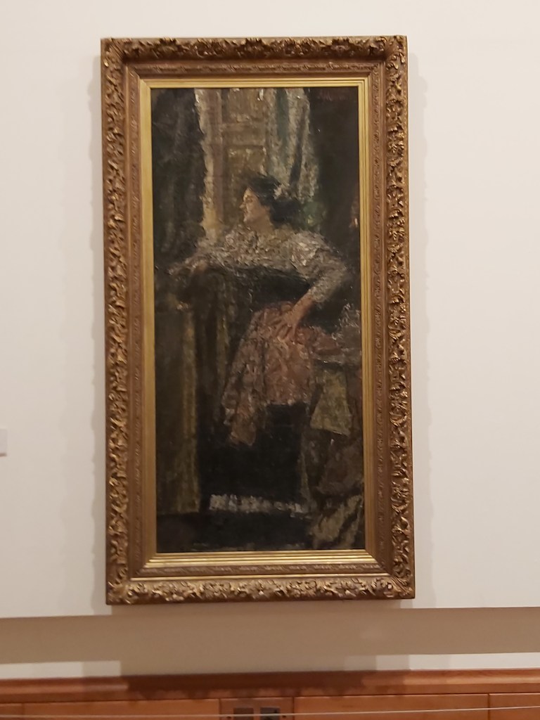 I found this an interesting painting. From a distance it is easy to make out what the subject matter is. However, as you move in closer to the painting it becomes much harder to make out details. Painfully so I found. This is definitely a painting that is intended to be seen from afar, maybe symbolising that girl is to be seen from a distance and not approached.