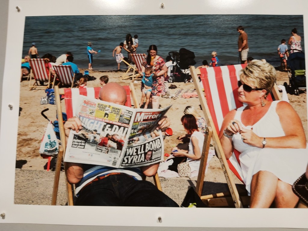 Martin Parr’s exhibition entitled Parr in Wales brought back memories of childhood memories of holidays in Barry Island and Porthcawl. Hundreds of people sitting and lying on sandy beaches enjoying the summer son during the factory fortnight holidays.