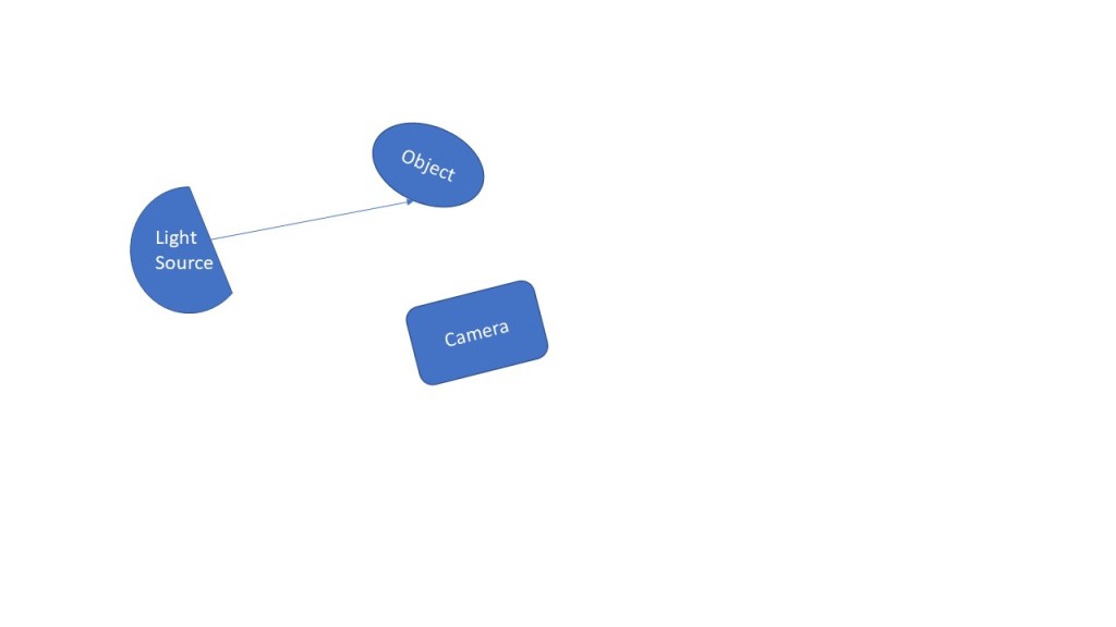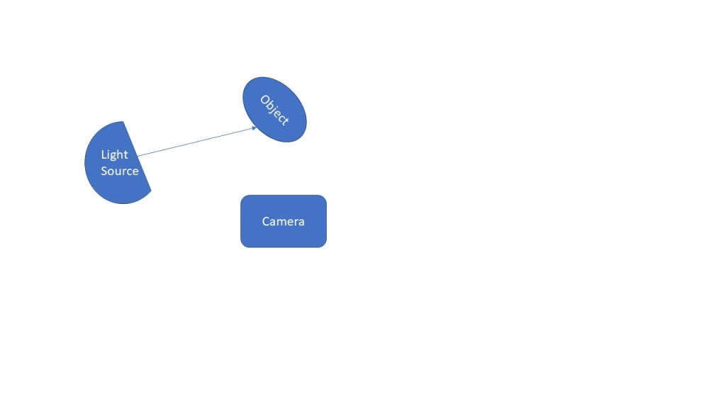 In the above image the object was rotated so that it was at more of an angle in relation to the camera. The large area of the stone is reflecting a larger portion of light and it is very clear where shadows are forming on the surface of the stone because its shape is blocking light from reaching those areas. Rotating the stone to smaller or larger degrees would have affected how much shadow would have been visible.