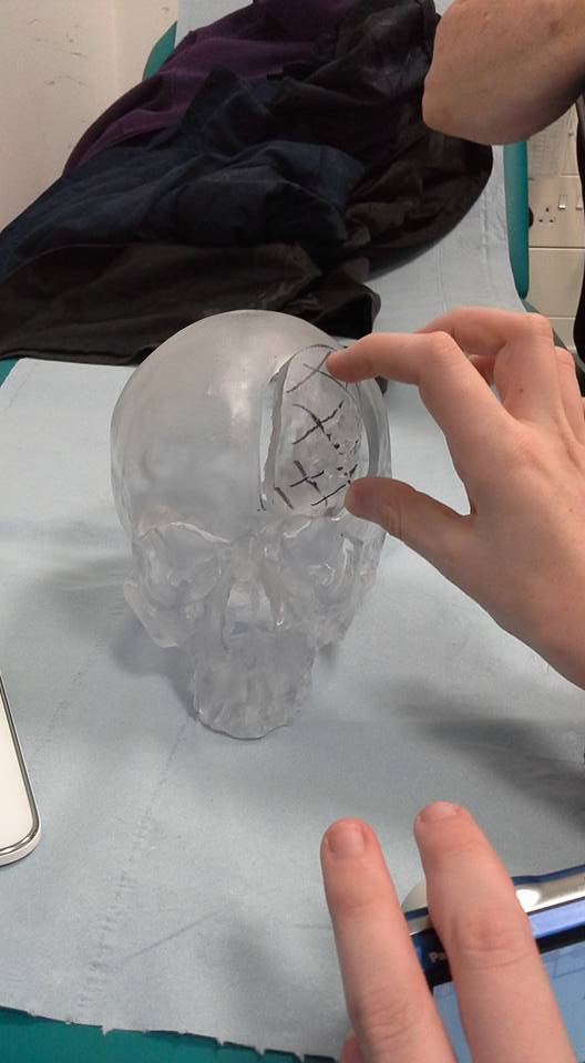 Although not as stunning as skulls made from crystal these are still as incredible because they are the skulls of an actual living, breathing human being. The images above are of the model made of my son’s skull when he was being prepared for surgery for a brain tumour.